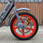 Pulito per rimanere fedeli alla linea originale, ma tecnicamente avanzato, sia a livello di telaio e ciclistica che di motore. La sfida è stata concentrare il massimo delle prestazioni e della tecnologia, in uno spazio ridotto e limitato ma senza snaturarlo. Vietati rinforzi vistosi, barre centrali e ghirigori che col ciao non c’entrano nulla. Un bel Freno a disco made in ITG all’anteriore, ma al posteriore basta la ganascia che freno, e non rovina questi rarissimi Cerchi Avio a 5 razze.