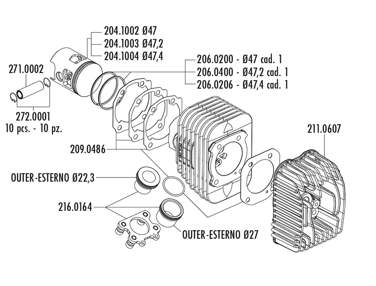 Altre caratteristiche tecniche: travaso di scarico con fori booster, pistone monofascia, guarnizione di testa in alluminio ricotto. Dettagli importanti che garantiscono migliori performance.